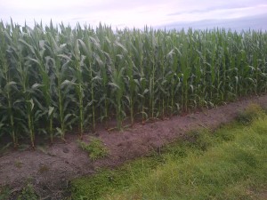 Corn and Soybeans – Carolina June 2012 by grassdmin8 | Jan 9, 2013 | Field ReportsHad a moment to take a picture. Soybeans will “lap” the alley next week. Corn will be in full tassel by next week as well. Have a good one y’all.