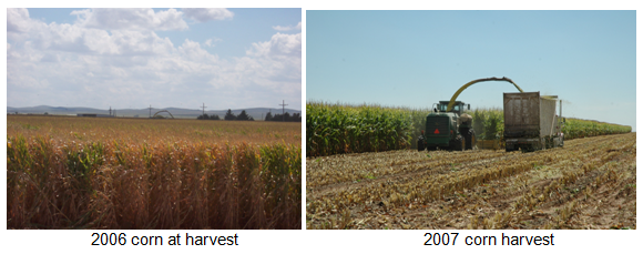 The yields and cost comparison of the drip irrigated corn for 2006 and 2007 are shown in the following table. Of note is that although the nutritional inputs were less, yields were up. Costs of nutritional inputs for 2007 were more per unit fertilizer because of the price increases over 2006. Although the tonnage increased by only 15 percent, profitability increased by 468 percent.